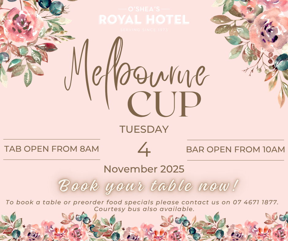 This year's Melbourne Cup celebrations promise to be our biggest one yet!!! So, saddle up Gundy & be part of the race that stops the nation at O'Shea's Royal Hotel.
